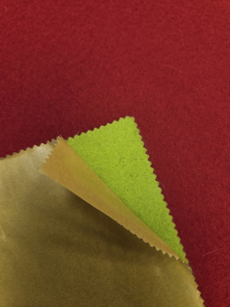 So entsteht ein starker, kohäsiver, langlebiger, gleichmäßiger, außergewöhnlich widerstandsfähiger Filz, der weich im Griff ist und „einsatzbereit“. Es ist ein Material, das die funktionale Stärke und Vielseitigkeit natürlicher Wolle mit der Praktikabilität einer selbstklebenden Rückseite kombiniert, die eine einfache und dauerhafte Befestigung auf verschiedenen Oberflächen wie Glas, Holz, Metall, Polymeren usw. ermöglicht.