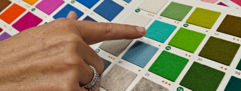 Al di là di essere una decisione estetica, la tintura del feltro di lana permette di adattare cromaticamente il materiale all’identità del design o del marchio, per integrarsi completamente nello spazio, nell’architettura o nel momento.